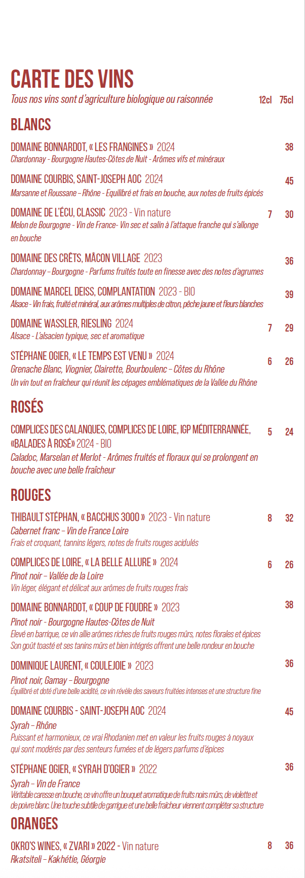 Carte des vins