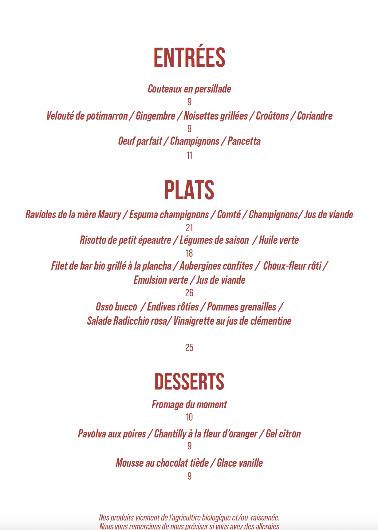 Carte du soir