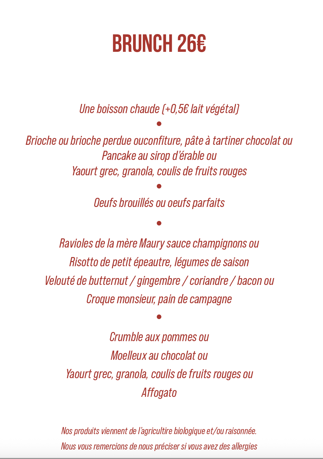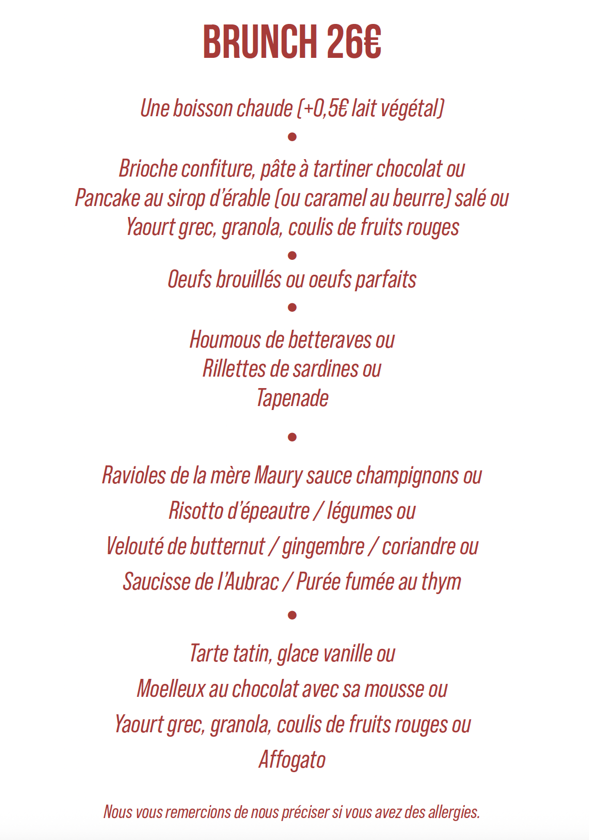 Formule brunch le dimanche