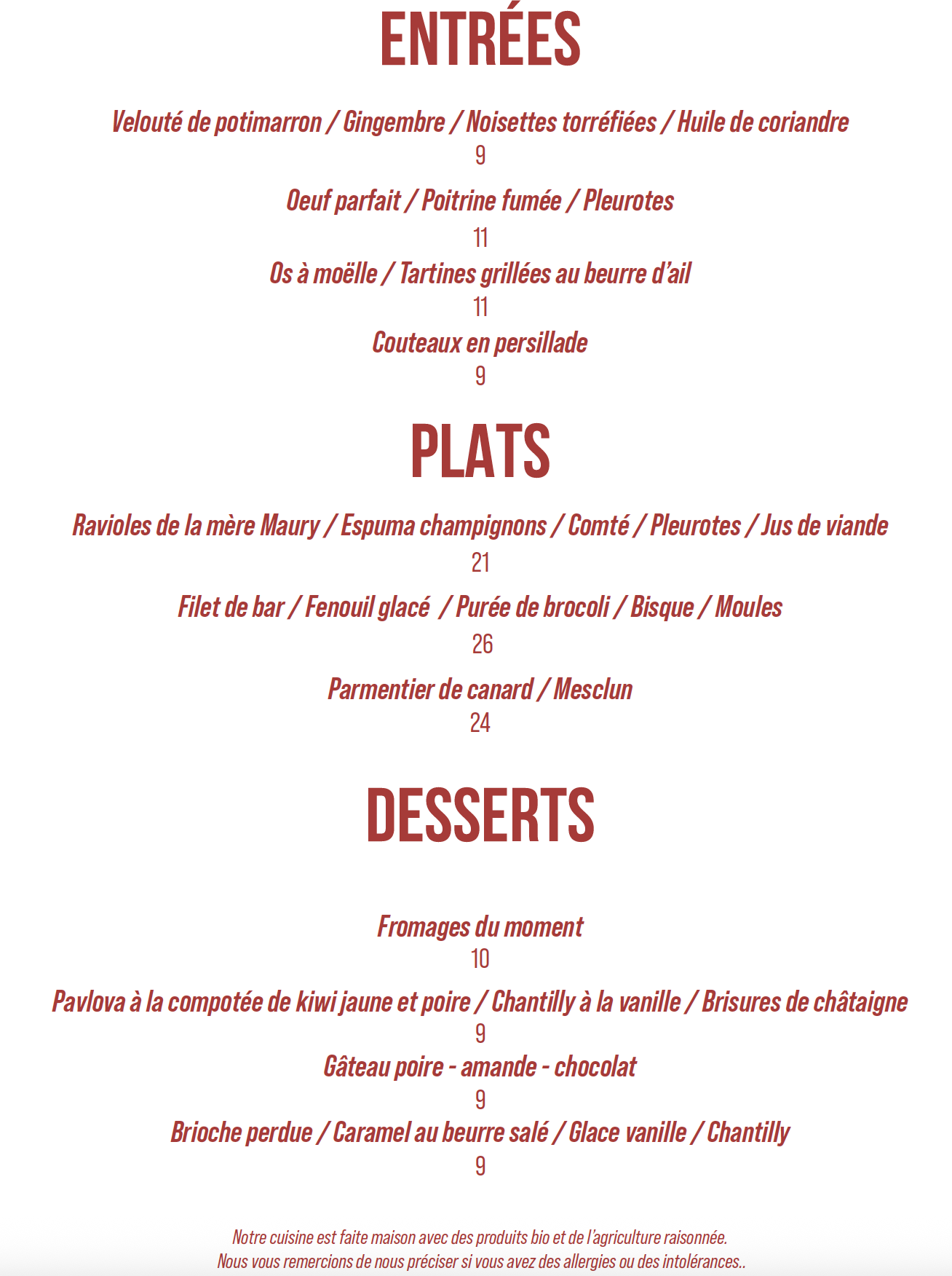 Carte du soir