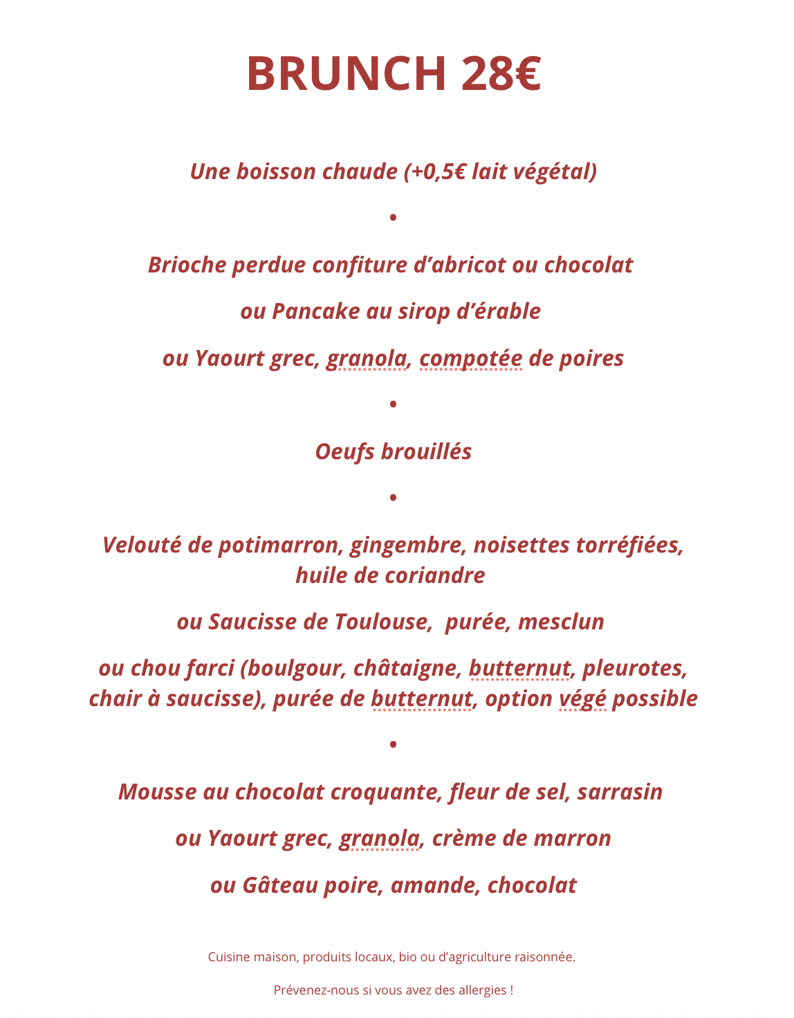 Formule brunch le dimanche